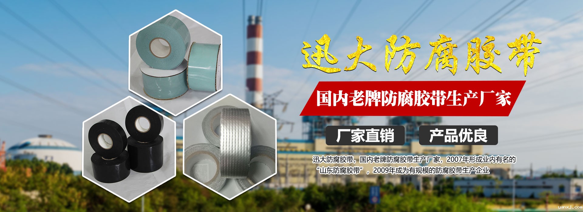 迅大防腐胶带,国内老牌防腐胶带生产厂家,2007年形成业内有名的“山东防腐胶带”,2009年成为有规模的防腐胶带生产企业。现年销售额近亿元,年出口额4000余万。