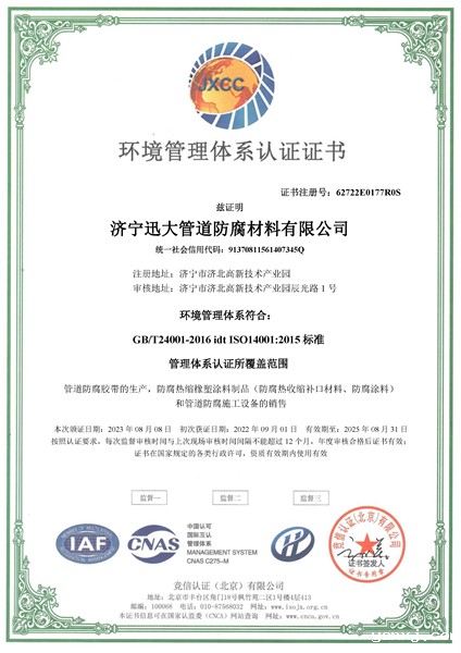 环境管理体系认证证书